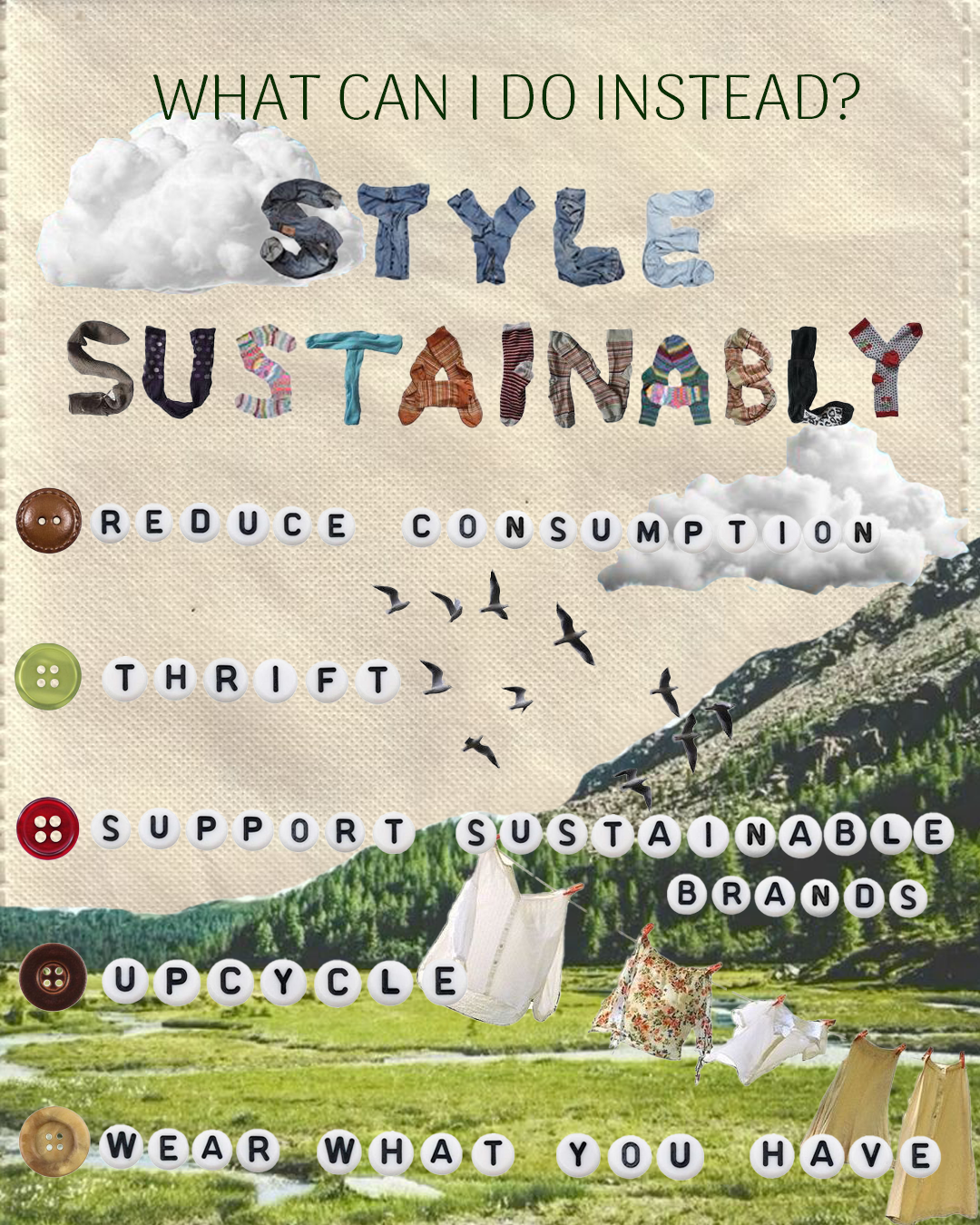A carousel social media design I created primarily with Adobe Photoshop to promote sustainable fashion over fast fashion.
